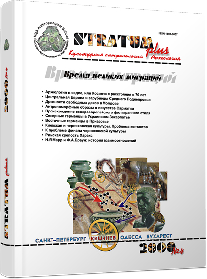 M. B. Shchukin (St. - Petersburg, Russia)A Finding at village Zalevki on Dnieper Bank and the Problem of Origin of North-European Filigree Style in I-II cc. AD Free!215S. A. Yatsenko, V. Yu. Malashev (Moscow, Russia)On the Polychromic Style of the Late Roman Time in Sarmatia Free!226S. A. Yatsenko (Moscow, Russia)The Antropomorphical Images in the Art of the Iranian-speaking Peoples of Sarmatia in the II-I CC. BC Free!251A. V. Vorotinskii (St. - Petersburg, Russia)On Cherniakhov Cups with Crosses Found in Lepesovka Free!273